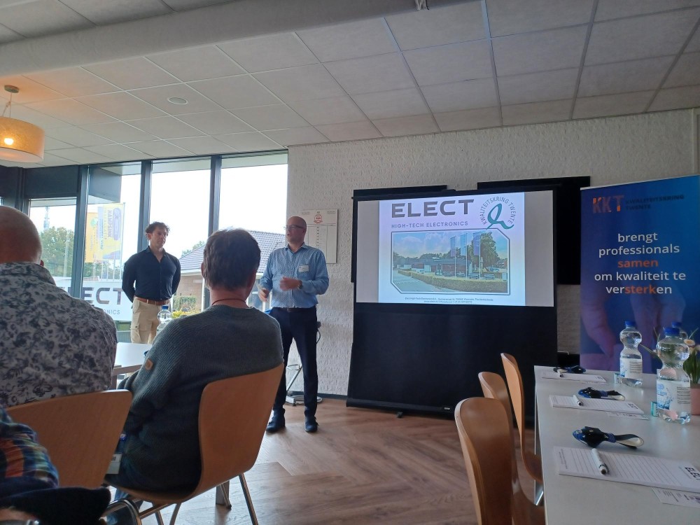 De kwaliteitskring bracht een inspirerend bedrijfsbezoek aan Elect. Na een warme ontvangst met koffie en wat lekkers opende Joost Brinkhuis, voorzitter van de kwaliteitskring, de middag. Vervolgens nam Remco Wiggers Dam van Elect de rol van gastheer over en gaf een korte introductie van het bedrijf en het programma.